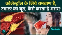 Tomato Juice For Cholesterol : कई अध्ययनों में पाया गया है कि टमाटर का जूस पीने से LDL यानी खराब कोलेस्ट्रॉल के स्तर में कमी आ सकती है। एक अध्ययन के अनुसार, जिन लोगों ने रोज़ाना टमाटर का जूस पिया, उनमें उनके LDL कोलेस्ट्रॉल में कमी और HDL कोलेस्ट्रॉल में वृद्धि देखी गई।टमाटर में मौजूद लाइकोपीन शरीर में ऑक्सीडेटिव स्ट्रेस को कम करता है, जिससे दिल की धमनियाँ स्वस्थ रहती हैं। <br /> <br />Many studies have found that drinking tomato juice can reduce the level of LDL i.e. bad cholesterol. According to a study, people who drank tomato juice daily saw a reduction in their LDL cholesterol and an increase in HDL cholesterol.Lycopene present in tomato reduces oxidative stress in the body, which keeps the heart arteries healthy. <br /> <br />#Istomatogoodforcholesterol #Tomatoforcholesterol #Tomatojuiceforcholesterol #Tomatojuicebenefits #Cholestrol <br /> ~HT.97~ED.118~