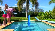 Nastya and dad are going to swim in the pool