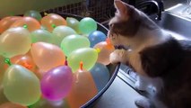 Cat playing with water baloons