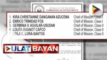 PBBM, isinumite ang ad interim appointments ng ilang opisyal ng DFA at AFP para sa kumpirmasyon ng Commission on Appointments<br /><br />For more news, visit: <br />►https://www.ptvnews.ph/<br /><br />Subscribe to our DailyMotion Channel:<br />►http://www.dailymotion.com/peoples-television-incorporated<br /><br />Subscribe to our YouTube channel:<br />►http://www.youtube.com/ptvphilippines<br /><br />Like our Facebook pages:<br />►PTV: http://facebook.com/PTVph <br />►Rise and Shine Pilipinas: https://www.facebook.com/riseandshinepilipinas<br /><br />Follow us on Twitter: <br />►http://twitter.com/PTVph<br /><br />Follow us on Instagram:<br />►https://www.instagram.com/ptvph<br /><br />Watch our livestream on: <br />►http://ptvnews.ph/livestream/<br />►https://www.dailymotion.com/PTVPhilippines<br /><br />Watch our News Programs, every Mondays to Fridays<br /><br />Rise and Shine Pilipinas - 6:00 - 8:00 am<br />Bagong Pilipinas Ngayon - 12:00 - 1:00 pm<br />Sentro Balita - 1:00 pm - 2:00 pm<br />Ulat Bayan - 6:00 pm - 7:00 pm<br />PTV News Tonight - 9:30 pm - 10:30 pm<br /><br />Saturday & Sunday:<br />►Ulat Bayan Weekend - 6:15 pm - 7:00 pm