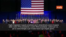 Usa, 06 novembre 2024<br />"Voglio ringraziare il popolo americano per lo straordinario onore di essere eletto vostro 47mo presidente e vostro 45mo presidente. Lotterò per voi, per la vostra famiglia e per il vostro futuro ogni singolo giorno. Mi batterò per voi con ogni respiro del mio corpo. Non mi fermerò finché non avremo consegnato l'America forte, sicura e prospera che i nostri figli meritano e che voi meritate. Questa sarà davvero l'età dell'oro dell'America". Lo ha detto Donald Trump nel discorso della vittoria dal Convention center di Palm Beach.<br />Gop
