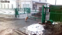 Dog Jumps on Gate Repeatedly to Look at Owner Standing on Other Side