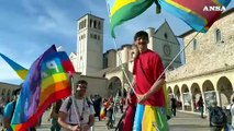 Bandiera della Palestina e Israele unite, la conclusione della Marcia della pace Assisi