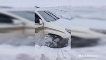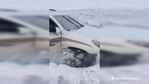 Scary moment shows ice crack as couple drives on frozen lake