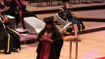 Watch as this student jumps into the splits during iconic graduation walk