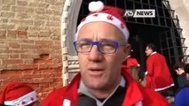 Venezia, la regata dei Babbi Natale nel Canal Grande