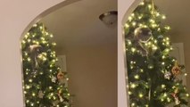 With just months remaining until Tom Cruise retires as Ethan Hunt, a worthy successor has emerged! <br /><br />Shared by Elle, this comically thrilling footage shows her pet cat using a Christmas tree to make a safe landing. <br /><br />"My cat climbed our Christmas tree, then jumped to the high window sill and got stuck," Elle told WooGlobe. "We got a ladder, but she started to freak out and jumped back into the tree, then climbed down." <br /><br />Making the jump was a calculated risk, and it turns out the athletic kitty is pretty good at math.<br /><br /><br />Location: Lincoln, CA, USA<br />WooGlobe Ref : WGA225745<br />For licensing and to use this video, please email licensing@wooglobe.com
