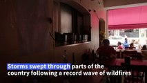 Fallen trees on Showell Lane in Meriden, Coventry. Strong winds brought down two conifers trees and a power line on Showell Lane in Meriden, Coventry. A 'Do not travel' warning has been issued in the North of England as heavy rain has flooded homes and caused disruption throughout Greater Manchester this morning, 01/01/25. Police rescue people from the A555 as multiple roads and motorways have been closed as a result of the severe flooding.