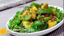 Simla mirchi chi Bhaji/ Capsicum receipe<br />Ingredients –<br />250 gms – Capsicum / Simla mirchi<br />7-8 garlic, 5-6 green chillies<br />½ tea spoon turmeric powder<br />½ tea spoon cumin seeds<br />1 big (100gms) bowl of chana aata / besan flour<br />Salt to taste<br />Procedure- <br />Wash & cut capsicum in small pieces & keep a side. Now heat 3-4 spoon of oil in kadai for tempering / tadka, put cumin seeds, garlic, green chillies, turmeric powder, capsicum in it, mix well for 2 mins. on high gas, then deem the gas, pour besan flour, oil & salt to taste, in it, pour 2-3 spoon of water in it & cover the lid for 3-4 minutes. After 3-4 min open the lid, mix it well & again cover the lid for 3-4 minutes, get it cooked on steam on low flame & its ready to eat.<br />Finally garnish with grated coriander leaves & serve not.<br /><br />Thanks for watching