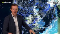 A cold night with widespread frost and icy patches. Wintry showers affect northern Scotland, giving further accumulations of snow, and a few wintry showers drifting into eastern coastal areas, Northern Ireland and Wales. Temperatures widely falling below freezing, and well below freezing where we have snow cover. Cloud increasing later across the far south west, with rain and hill snow. Yellow warnings in place for ice and snow. - This is the Met Office UK Weather forecast for the evening of 09/01/2025. Bringing you today’s weather forecast is Aidan McGivern.
