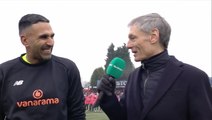 Kick-off for the FA Cup third-round tie between Tottenham and Tamworth was delayed as players attempted to fix a problem with the goal netting.<br /><br />Ange Postecoglou's side traveled to The Lamb Ground on Sunday with 96 league places separating them from their National League opposition.<br /><br />Tamworth entered the game having never previously reached the fourth round of the competition, with their run to the third round matching their best-ever performance in the FA Cup.<br /><br />With a dream fixture against Premier League giants awaiting them, the semi-professional players awaited one of the biggest games of their career. <br /><br />That is until a hole was spotted in netting in the roof of the home side's goal. <br /><br />As fans watched on from behind the goal and with a national TV audience tuning in, Tamworth players quickly leaped into action to resolve the issue.<br /><br />Goalkeeper Jas Singh was the first to attempt to resolve the problem but was unable to repair the gap in the netting.<br /><br />He was then joined by forward Beck-Ray Enoru who clambered onto a team-mate's shoulders to reach the affected area.<br /><br />While hoisted up by his team-mate, Enoru used a roll of tape to make the necessary repairs as the officials looked on.<br /><br />In addition to turning out for the fifth-tier side, Enoru spends his weekdays working as an assistant at the clothing retailer Zara.<br /><br />With the issue sufficiently resolved, the third-round fixture eventually got underway after a several-minute delay.