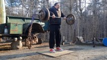 We're looking at about 80lbs of bar weight and about 36lb of ⅝" chain per side. The goal was to force me to accelerate on the "2nd" Pull making me stand as tall as possible. It's interesting that the weight increases the higher l pull it. Lotsa good stuff going on here. God Bless! <br />"For they that are after the flesh do mind the things of the flesh; but they that are after the Spirit the things of the Spirit." <br /> - Romans 8:5