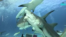 Bull sharks are being invited into a section of water only a stone's throw from a popular South Coast beach. Footage by Trapman Australia.