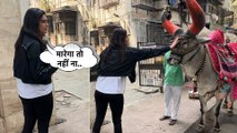 टीवी एक्ट्रेस करिश्मा तन्ना को उनके घर के बाहर पैपराजी ने अपने कैमरों में कैद किया। इस मौके पर एक्ट्रेस का बैल के प्रति स्वीट जेस्टचर देखने को मिला।