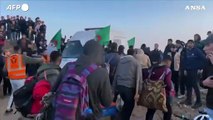 Nuseirat (Striscia di Gaza), 27 gen. (askanews) - Gioia per il ritorno a casa e tristezza per la devastazione e tutti i parenti e amici che oggi non ci sono. Alcuni palestinesi raccontano le loro emozioni mentre tornano nel nord di Gaza, dopo un compromesso dell'ultimo minuto tra Israele e Hamas per il rilascio di altri sei ostaggi."Siamo felici ma allo stesso tempo tristi, perché abbiamo perso molti dei nostri cari, mio figlio è un martire, ho qui suo figlio con me", spiega la sfollata, Entissar Al-Saeedi."Tutti aspettavano questo momento con nostalgia, speriamo che il futuro sia migliore perché la gente ha pagato un prezzo altissimo", aggiunge Mahumud Bader, anche lui sfollato."Siamo qui oggi per partecipare a queste scene storiche, le scene del ritorno dei nostri sfollati dal sud della Striscia di Gaza al nord. E per coloro che dicevano che non ci sarebbe stato alcun ritorno degli sfollati: 'Eccoli qui stanno ora tornando nel nord della Striscia di Gaza', onestamente, non abbiamo vita fuori da Gaza", commenta Mohamed Nasser, abitante di Rafah.