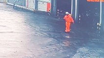 A woman attempted to take her horse from the paddock on a day when the ground was covered in pure ice. While the horse, equipped with studs, walked confidently, the woman struggled due to the slippery nature of her riding boots. Thankfully, no one was hurt.<br /><br /> <br /><br />*The underlying music rights are not available for license. For use of the video with the track(s) contained therein, please contact the music publisher(s) or relevant rightsholder(s).*