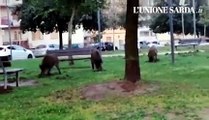 Cinghiali a spasso in pieno giorno per le vie di Sassari