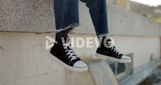 This person, while showcasing slip- resistance shoes them lost balance and slid off the roof while the shoes remained in place. The demonstration, meant to prove their effectiveness, ended up exposing the shoes were actually fastened to the roof.