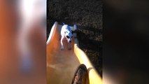 While rock climbing, a man stood at a height to take out his water bottle to drink, but his camera slid out of his bag and fell.