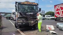 Un peligroso choque de camiones con propanol inflamable