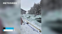 "Tsunami" of water and ice on a river in Xinjiang, China