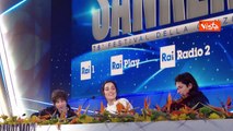 Levante canta il ritornello della sua canzone durante la conferenza stampa