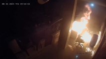 Momento en que colonos israelíes prenden fuego a la casa de una familia palestina