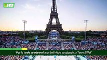 Luego de que un hombre escaló el emblemático monumento previo a la clausura de la justa deportiva de cada cuatro años, fue arrestado en París.