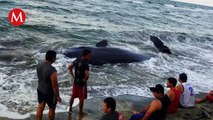 Encuentran ballena encallada en zona costera de Cárdenas, Tabasco