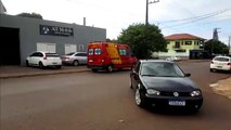 Três veículos se envolvem em colisão na Rua Paraná e motociclista fica ferido