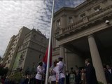 Izan bandera peruana junto a bandera de la paz en la plaza San Martín