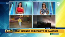 Incendio en Lurín: falta de agua dificulta labor de bomberos en depósito de camiones
