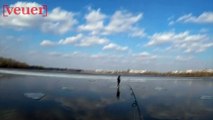 Not even the best comedy flicks can match the laughter that comes from taking a clumsy friend on a fishing trip in freezing weather. <br /><br />"I was fishing with my friend in very cold, icy conditions," the filmer, Daniel, told WooGlobe. "We were crossing a large frozen puddle to reach the river when he slipped and fell on the ice." <br /><br />Daniel struggles to contain his laughter as his friend attempts to navigate the slippery surface. <br /><br />Fortunately, the ice doesn’t fully crack—otherwise, this comical moment could have taken a chilly turn.<br /><br /><br />WooGlobe Ref : WGA283953<br />For licensing and to use this video, please email licensing@wooglobe.com