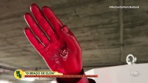 Elon Musk levanta a "motosserra da burocracia", um objeto que representa os cortes que o empresário tem feito no governo. #MelhorDaNoiteNaBand