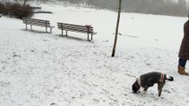A dog owner rescued his golden retriever after it accidentally fell into an icy pond.<br /><br />The man, who was not named, used an inflatable raft to reach his pup, which was stuck in the water in the middle of the pond in Hanzhong, China.<br /><br />A video shows the retriever's owner breaking through the ice with a rock to reach his pet.<br /><br />The pair were then pulled safely to shore by a crowd of tourists who had gathered on the bank.