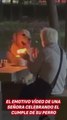 La preciosa imagen de una mujer celebrando el cumple de su perro