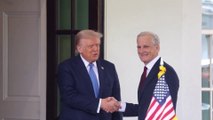 Washington, 24 feb. (askanews) - Il presidente Usa Donald Trump ha accolto alla Casa Bianca il suo omologo francese Emmanuel Macron. È il primo incontro bilaterale fra i due dopo la rielezione di Trump.Rispondendo alle domande dei cronisti prima di entrare nella Casa Bianca per dare il via ai colloqui, entrambi hanno rilasciato dichiarazioni di sostegno al Papa, ricoverato al Gemelli per una polmonite bilaterale da oltre una settimana, augurandogli di stare meglio e di guarire il prima possibil.