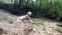 The owners of the dog featured in this video should take pride in the fact that their pup is unpredictable! <br /><br />The clip shows Barney searching for his toy, Max. Upon realizing that Max is resting on his owner's head, Barney decides to retrieve it in an unexpected manner. <br /><br />Rather than pleading for the toy or jumping to get it back, the spontaneous pup channels his inner cat and playfully scratches his owner's face. <br /><br />Looks like expecting the unexpected shouldn't apply only to humans!<br /><br /><br /><br /><br />TITLE #2: Playful Dog Uses Unexpected Method to Retrieve Toy Resting on Owner's Head<br /><br />WooGlobe Ref : WGA189051<br />For licensing and to use this video, please email licensing@wooglobe.com