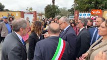 Verdone "sindaco" visita scuola danneggiata da esplosione Via Gordiani con caschetto in testa