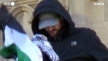 Uomo con bandiera palestinese si arrampica sul Big Ben