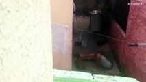 Crueldade: Morador de rua espanca cachorro no interior de SP e câmera de segurança grava toda a ação