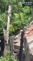 Marquise desaba e atinge mulher em calçada durante vendaval na RMC; vídeo mostra momento