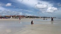 b'Carros ficam atolados na praia em Salinas'