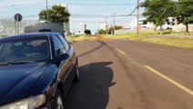Carro salta barranco na Avenida da FAG e é abandonado na Rua Emir Sfair