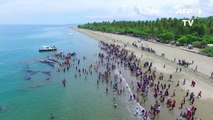 Drone capta resgate de baleia-jubarte encalhada em praia no Brasil