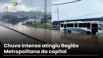 Chuva forte em Aquiraz alaga ruas e deixa carros ilhados