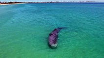Cachalote morre após entrar em águas rasas da Austrália