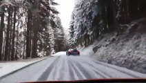 Faire du drift sur une route de montagne enneigée avec une Audi R8...
