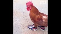 The chicken wears shoes !!!