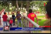 Trujillo: bomberos rescatan a un asustado gato de árbol